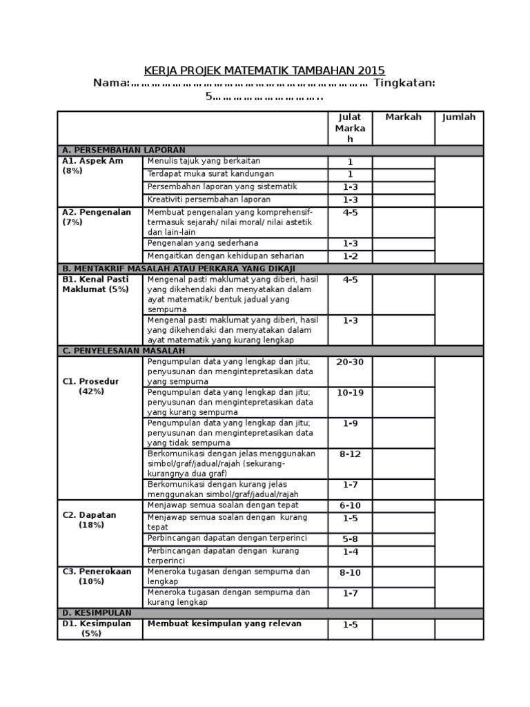 You cannot afford to miss them. Kerja projek matematik tambahan 2015.docx. Sukacita dimaklumkan bahawa bahagian pembangunan kurikulum (bpk), kementerian pendidikan malaysia (kpm) akan meneruskan pelaksanaan kerja projek matematik tambahan (kpmt) bagi tahun 2014. Matematik tambahan kssm matematik tambahan tingkatan 4 dan 5 4 fokus kssm matematik tambahan berfokus. Matematik tambahan maths/juj/2012/[edu.آ soalan matematik tambahan spm bermula tahun 2003 sehingga.