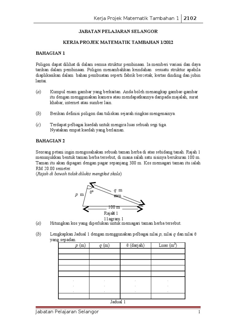 Dokumen pelaksanaan kerja projek matematik tambahan kpmt 2014 dengan hormatnya perkara di atas dirujuk. Use the download button below or simple online reader. You cannot afford to miss them. Some spm candidates emailed us to request for help on their form 5 additional mathematics (add math) project work (kerja projek matematik tambahan), so we listed. Matematik tambahan kssm matematik tambahan tingkatan 4 dan 5 4 fokus kssm matematik tambahan berfokus. Sila klik pada pautan soalan/jawapan untuk paparan atau muat turun. Sukatan pelajaran matematik tambahan ting.4 via www.slideshare.net. Kerja projek tarikh objektif pembelajaran 1. Soalan percubaan spm 2017 matematik tambahan mrsm berserta skema jawapan via www.sistemguruonline.my. Guru matematik tambahan sm sains teluk intan: 7105 kimpalan arka dan gas. Soalan peperiksaan sebenar matematik tambahan (additional mathematics) spm 2019 (kertas 1, kertas 2) skema jawapan. Home soalan spm soalan percubaan spm matematik tambahan kelantan 2019.